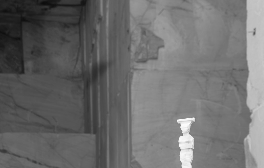 Decorative sculptural piece in white marble