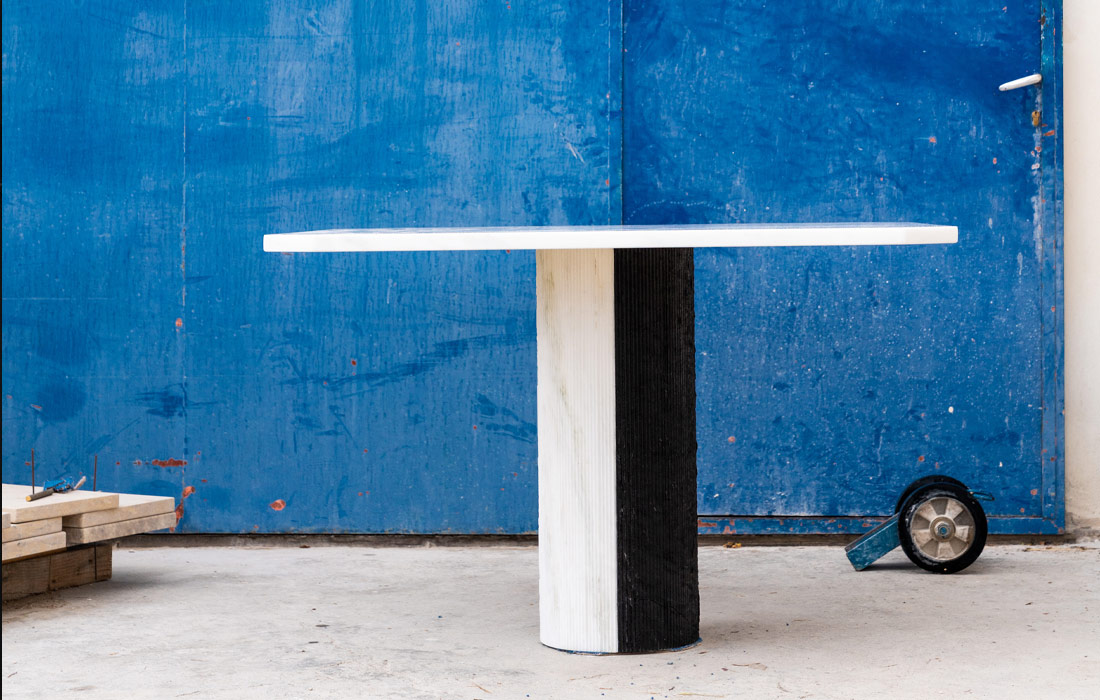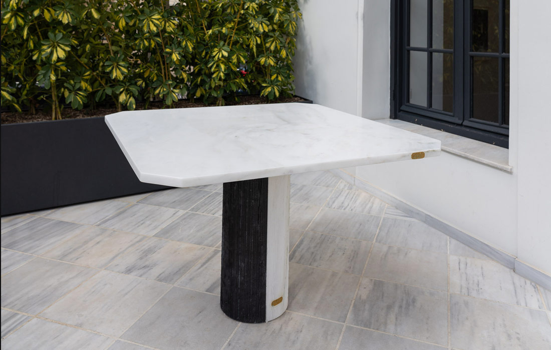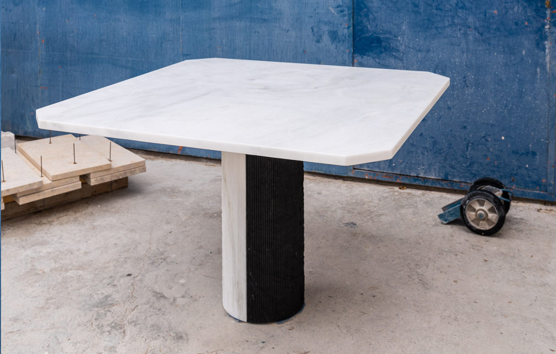 Sculptural table in white & black marble