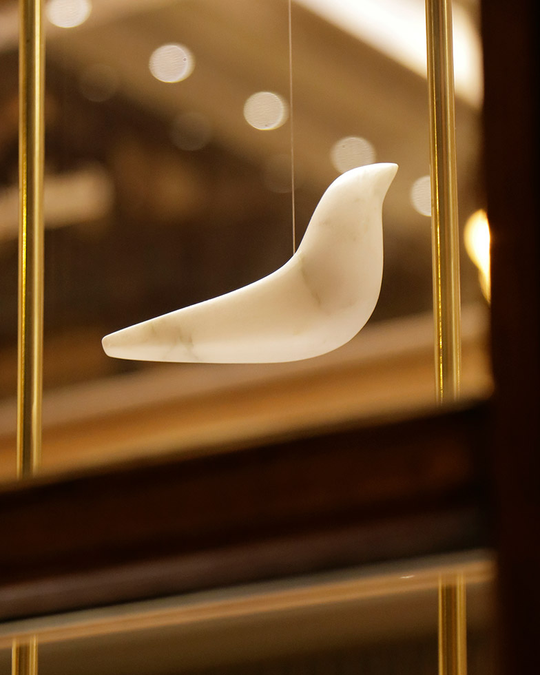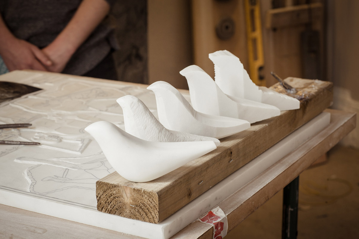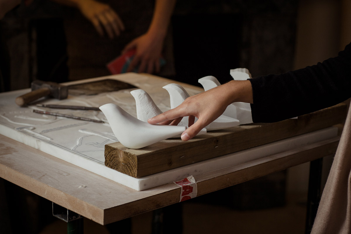 Decorative sculptural piece in white, green or black marble