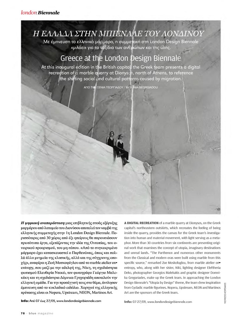 on· entropy pavillion at the London Design Biennale presented in Aegean's inflight magazine