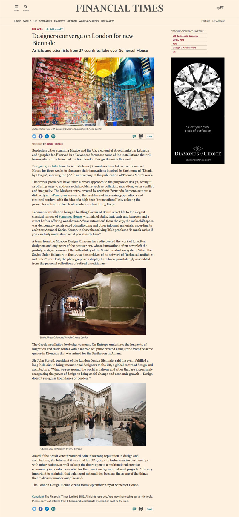 inancial Times on "Biennale with Designs on Social Change", featuring on·entropy pavilion